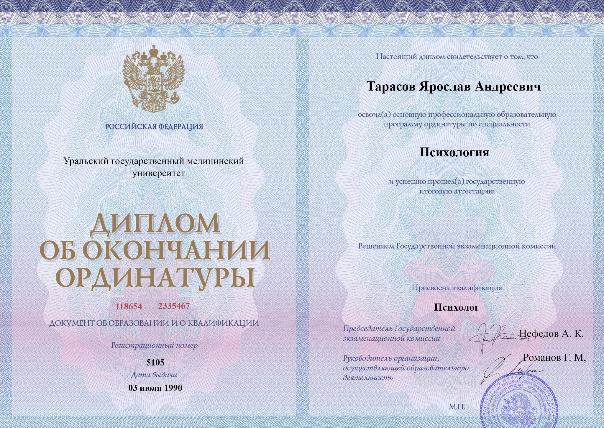 • Российский национальный исследовательский медицинский университет имени Н.И. Пирогова (психиатрия-наркология).